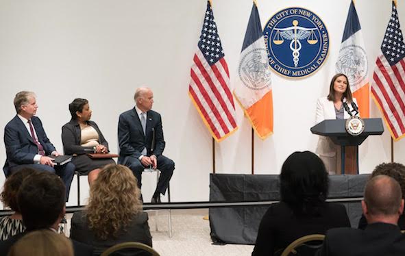 Thank you DA Vance for that very generous introduction and for your deep commitment to this issue. I have to say, I don’t often get starstruck, but standing up here today—wow. I am starstruck. Why am I starstruck? Because I’m standing with leaders. One thing about leaders: they have vision. They hold out a vision for people to follow, to buy into, to believe in. You can read that in any book on leadership.